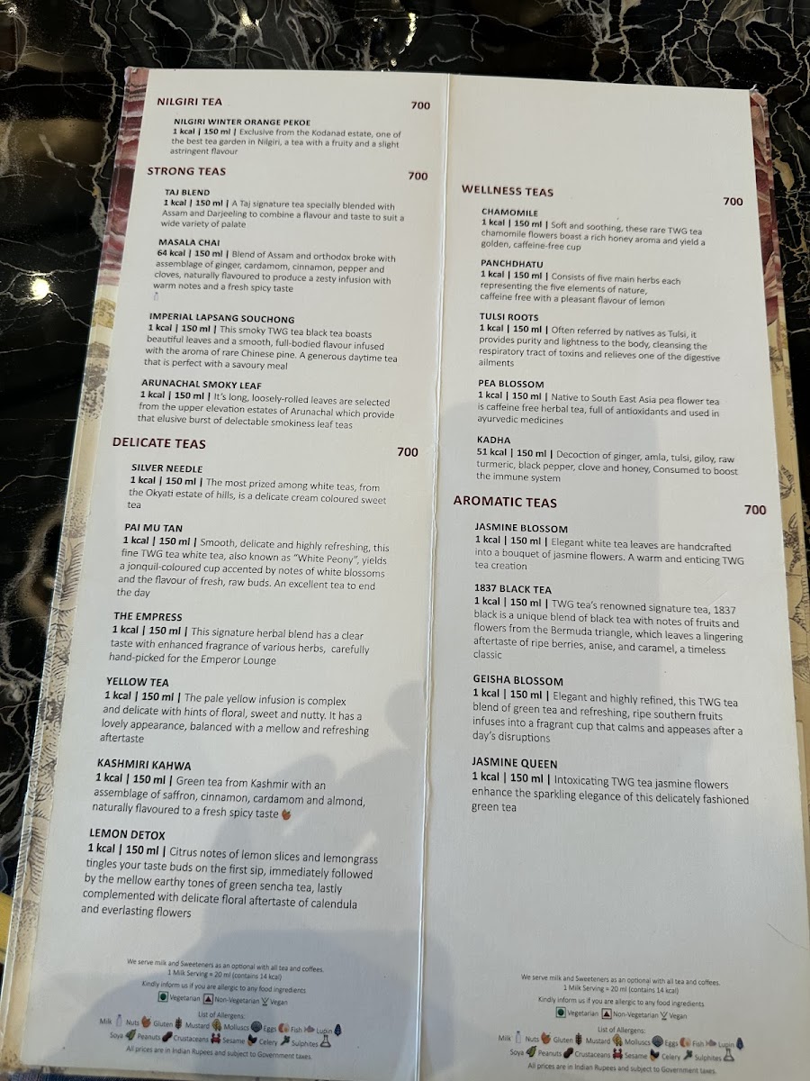 For tea aficionados, the selection of premium Assam teas is a highlight, with options such as the delicate Harmutty and Doomni Black Pearls. The staff, known for their attentiveness and expertise, is always eager to guide you through the variety of choices, ensuring that your beverage perfectly complements your meal.